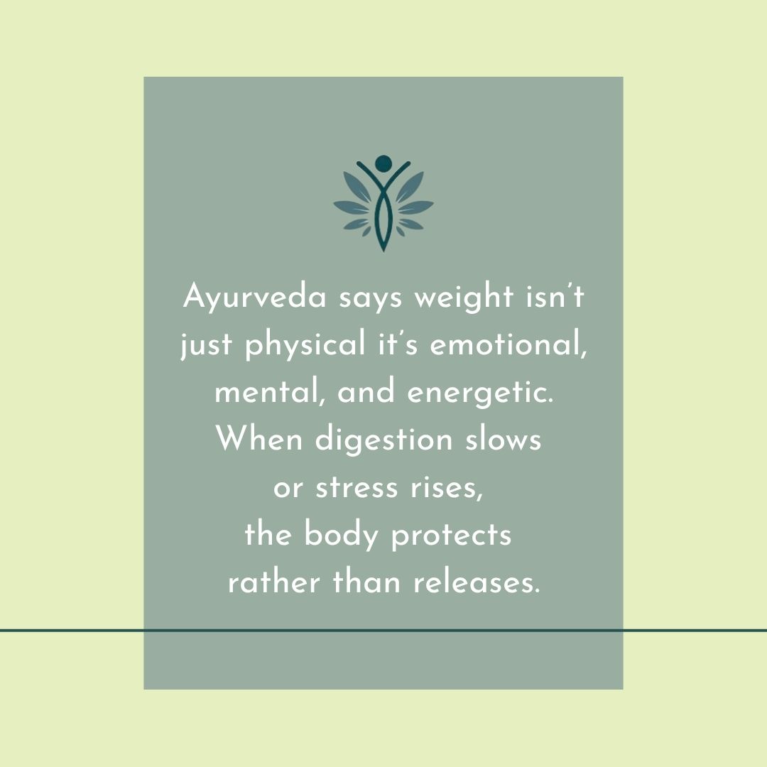 Ayurveda holds that weight gain, heaviness, puffiness, and sluggishness often arise when the digestive fire (Agni) is weak and toxins (Ama) accumulate. In simple terms, food too large for your digestion, or irregular timing, or heavy processed foods, means slower metabolism, congested channels, and less vitality.